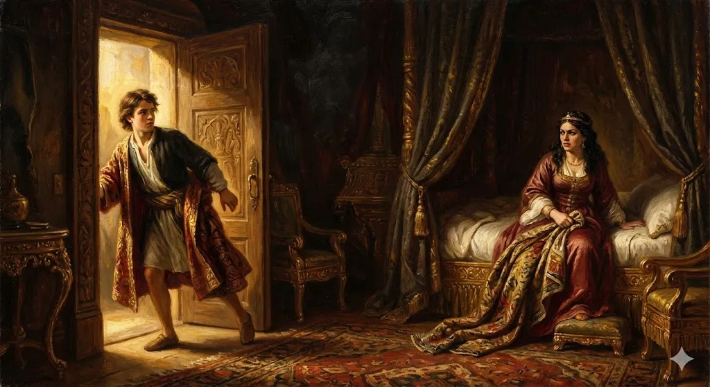 요셉은 유혹을 뿌리치다 자신의 겉옷을 빼앗겼습니다.