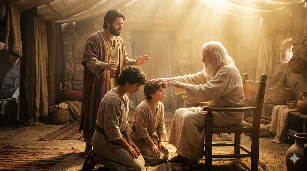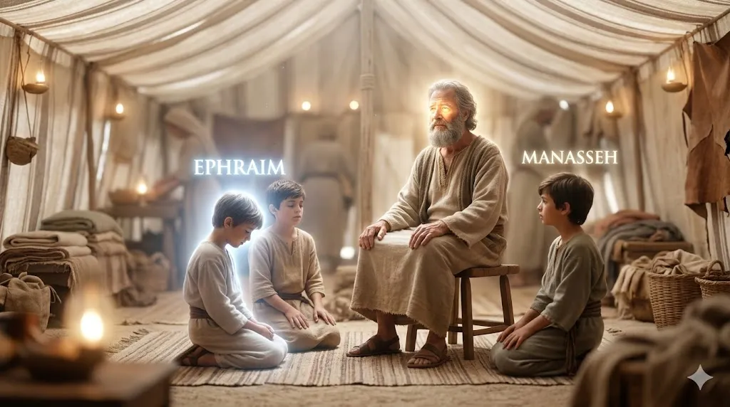 창세기 48장은 노년에 이른 야곱이 요셉의 두 아들, 므낫세와 에브라임을 축복하는 역사적인 순간을 기록하고 있습니다. 육신의 눈이 어두워진 야곱 앞에서, 요셉은 당연히 장남인 므낫세에게 오른손 축복(장자의 명분)이 가도록 아이들을 배치했습니다. 그러나 야곱은 요셉의 예상을 깨고 두 손을 의도적으로 엇갈리게(crosswise) 내밀어 차남에게 오른손을 얹습니다.