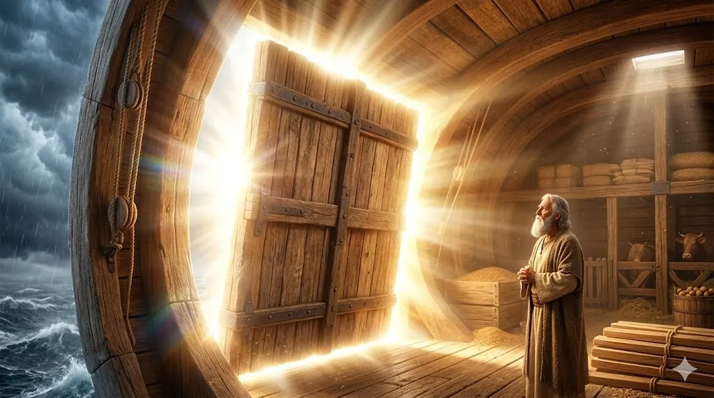 노아가 스스로 문을 닫고 자물쇠를 채운 것이 아닙니다. 창조주 여호와 하나님께서 친히 그를 방주 안에 넣으시고, 심판의 물이 한 방울도 스며들지 못하도록 그 문을 영벽으로 '봉인(Shut in)'해 버리셨습니다!