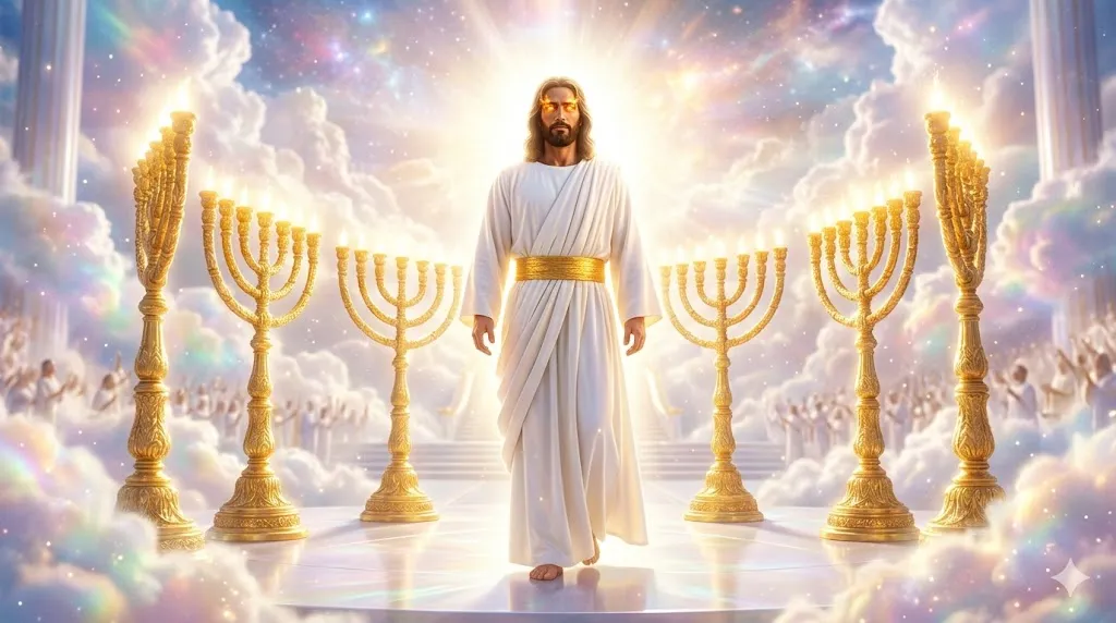 그렇다면, 십자가의 구속 사역을 완성하시고 부활 승천하신 지금, 그분의 모습은 어떠할까요? 구약의 현현이 육신을 입고 오시기 전의 **'미리 보기(예표)'**였다면, 요한계시록에 나타난 예수님의 현현은 온 우주의 통치자로서 그 본모습을 100% 드러내신 **'영광의 실체(최종 계시)'**입니다!