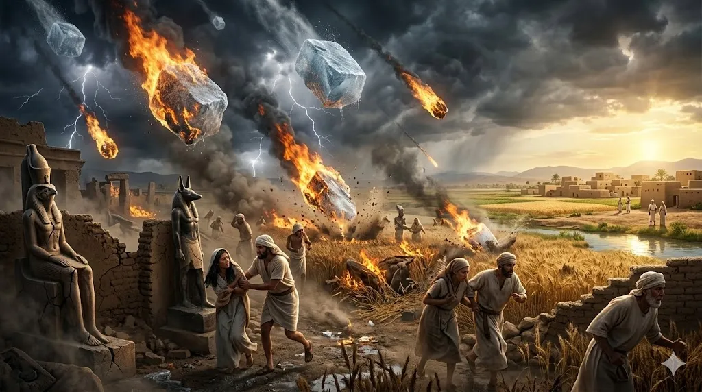 이집트 마술사들과 백성들의 몸에 났던 악성 종기(Sore)와 하늘에서 떨어진 거대한 우박(Hail)은, 장차 짐승의 표를 받은 자들에게 쏟아질 대환난 심판의 완벽한 리허설입니다. 모세가 화덕의 재를 하늘로 날려 종기를 일으켰듯이, 세상의 악과 우상 숭배의 재(흔적)는 반드시 하나님의 공의로운 심판으로 되돌아오게 됩니다.