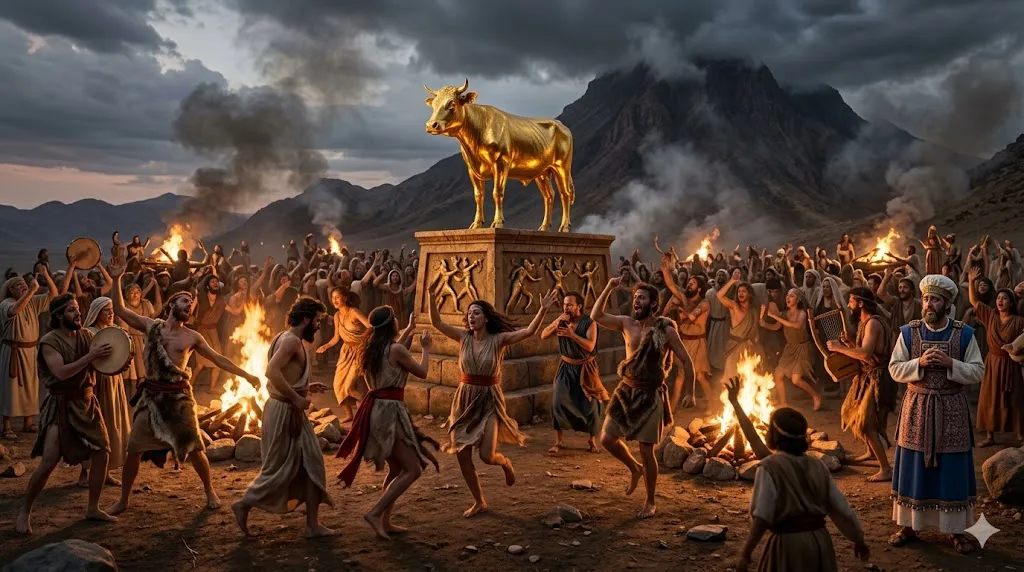 출애굽기 32장에서 킹제임스 성경은 금 송아지 사건에 숨겨진 다신교적 혼돈과, 영적 타락이 가져온 '육체적 더러움(음란)'의 실태를 적나라하게 폭로합니다.