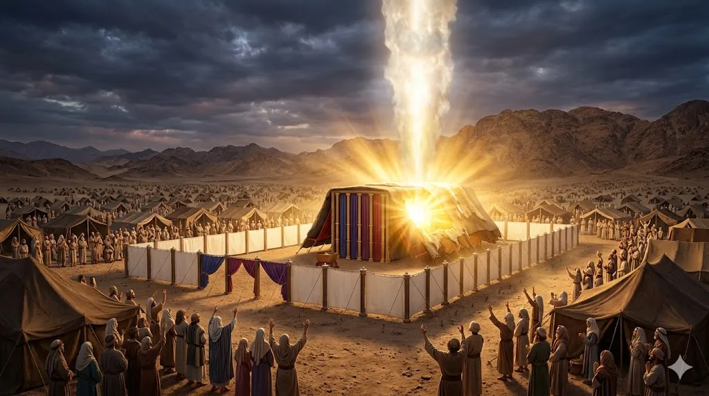 어린 양의 피를 문설주에 바르며 벌벌 떨던 노예들이, 이제는 하나님의 찬란한 영광이 머무는 성막을 중심에 모시고 광야를 행진하는 위대한 군대가 되었습니다.