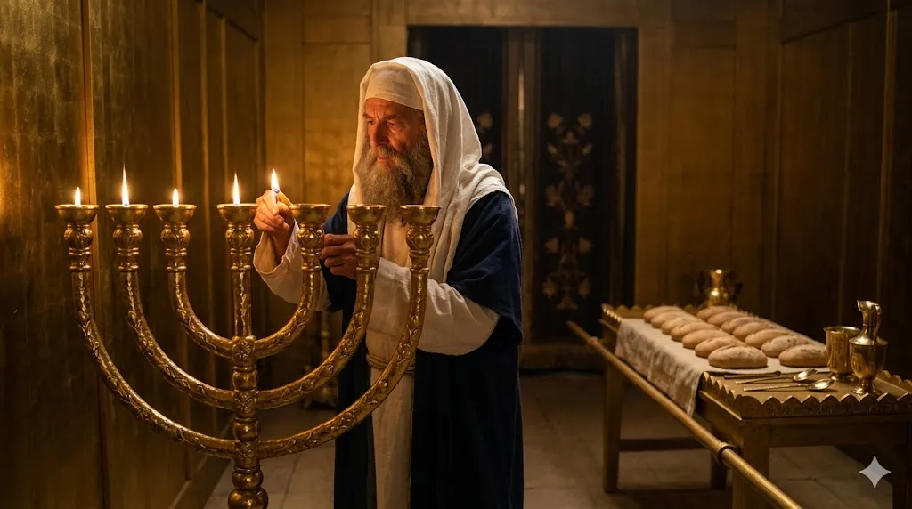 출애굽기 40장에서 킹제임스 성경은 거룩함(Holy)을 부여하는 본질적인 단어와, 하나님의 임재(불)가 나타나는 정확한 위치를 선명하게 지켜냅니다!